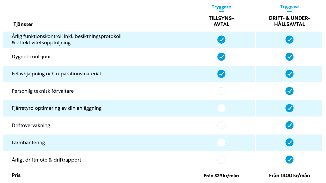 Teckna ett serviceavtal och känn dig ännu tryggare - eller till och med tryggast! Eftersom behovet för optimering och övervakning kan variera erbjuder vi olika servicenivåer på våra avtal.
