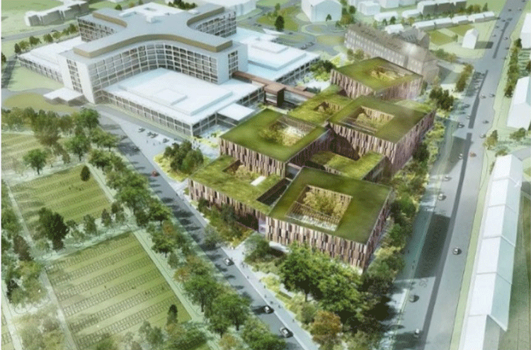 Sjukhusområdet i Helsingborg genomgår just nu renovering, om- och tillbyggnation som beräknas vara klar 2025. Av huvudbyggnadens 110 000 m2 bygger man om och renoverar 74 000 m2. Det tillkommer även en byggnad (till höger i bild) på 45 000 m2.