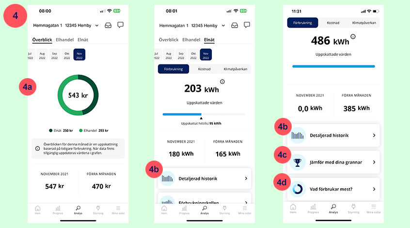 Följ och jämför din energianvändning -  oavsett om du har el, fjärrvärme eller gas.