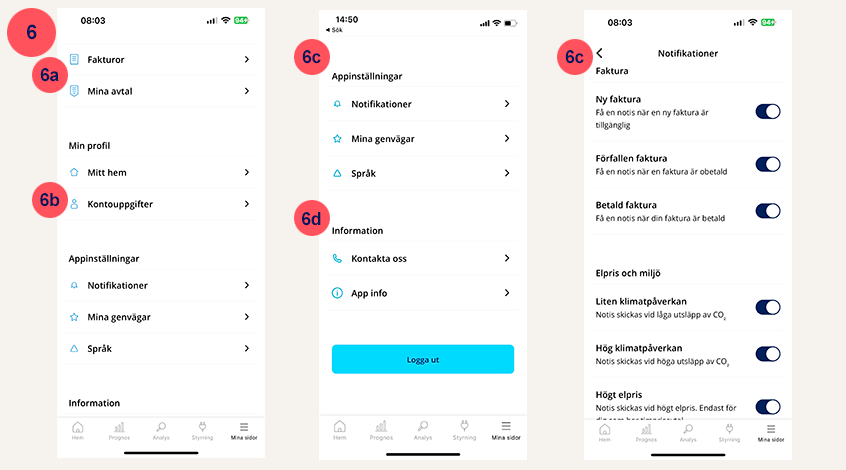 Se din faktura, ta del av avbrottsinfo, gör diverse inställningar och lämna feedback.